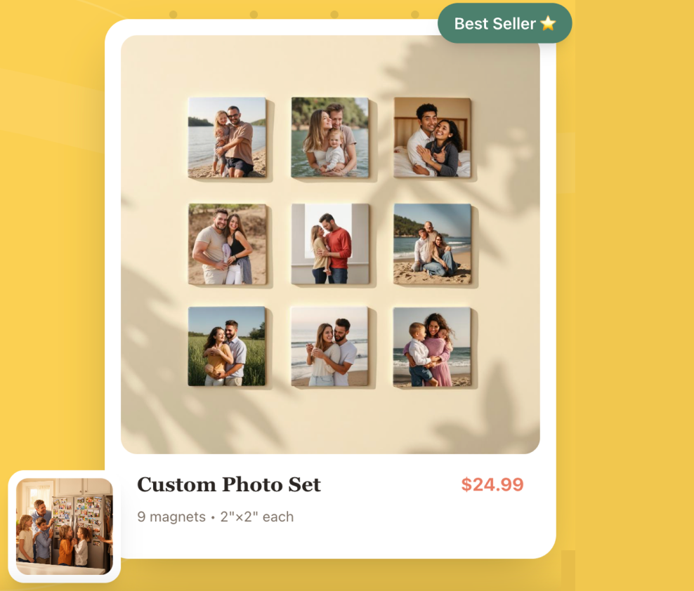 Transform your favorite photos into beautiful magnets in under 5 minutes. No design skills needed — just upload, customize, and order.